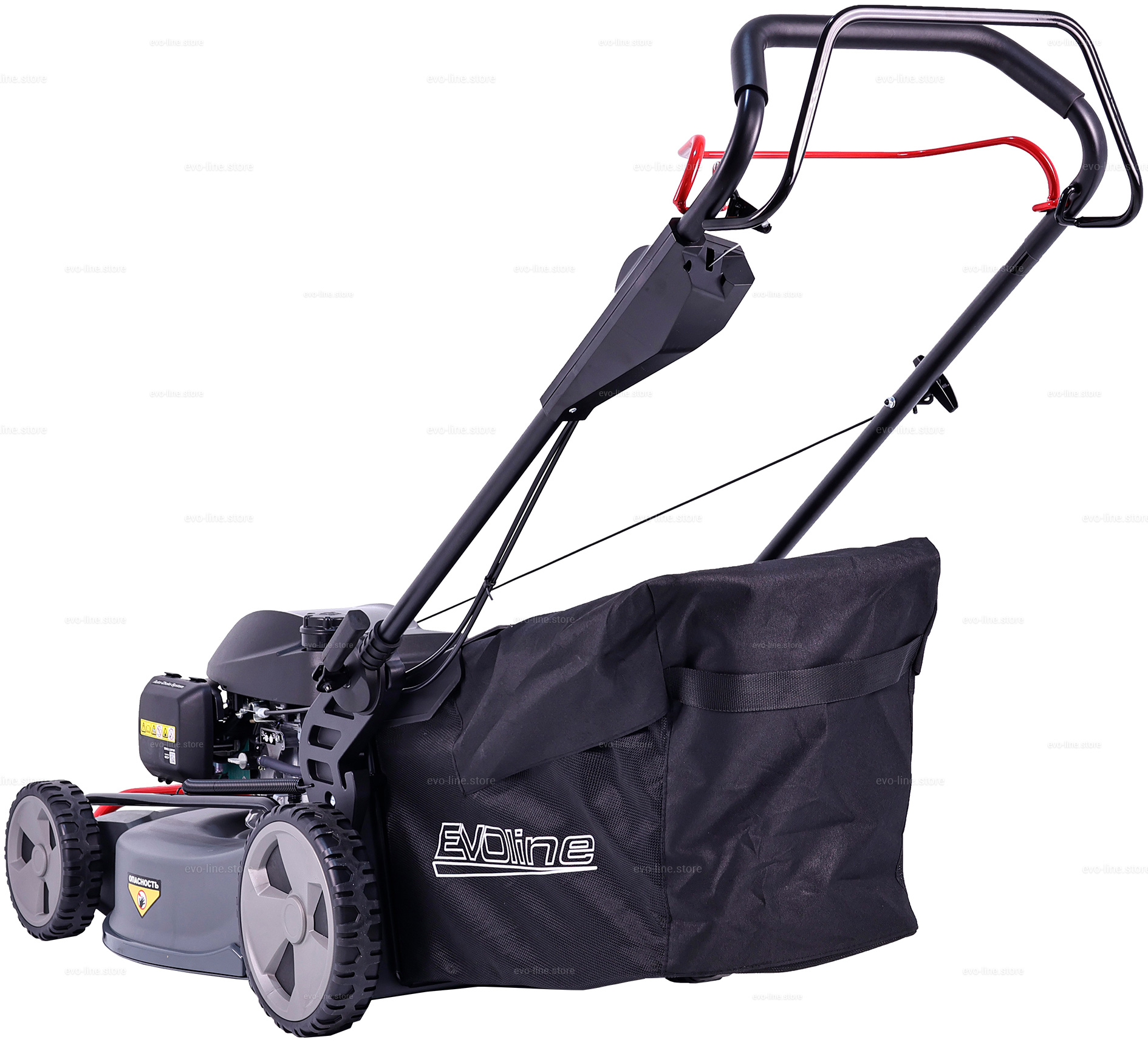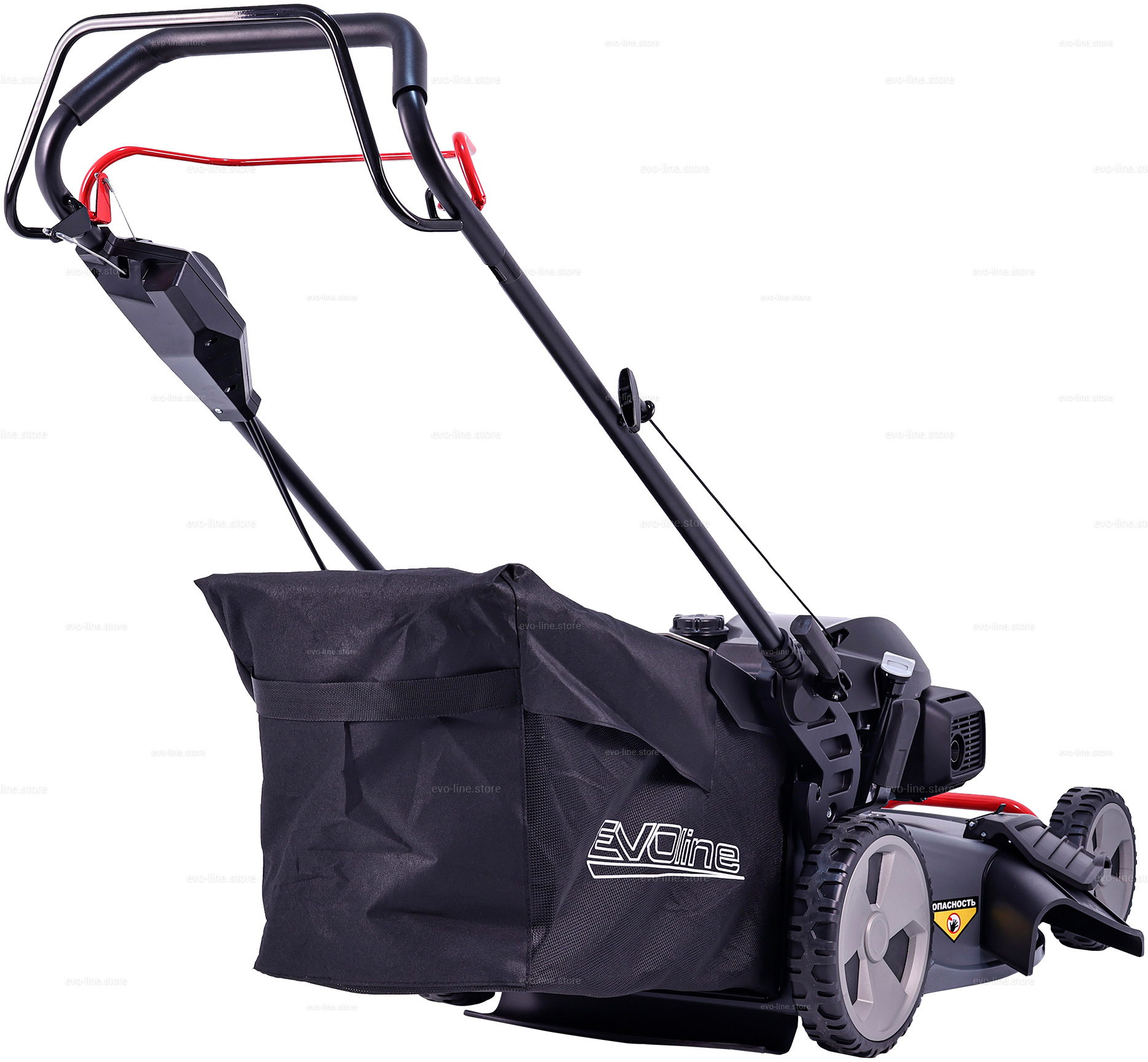- Бензиновая газонокосилка EVOline LMG 53 CVH COMMERCIAL обладает привлекательным дизайном и простотой использования, что делает её идеальным помощником в саду.