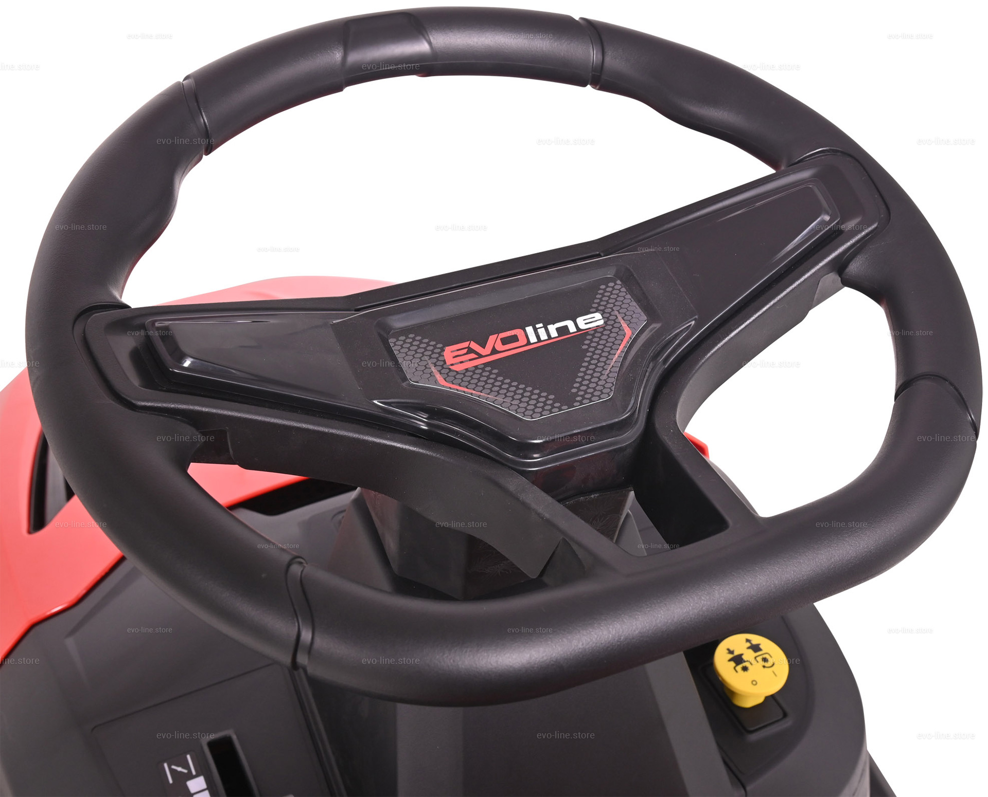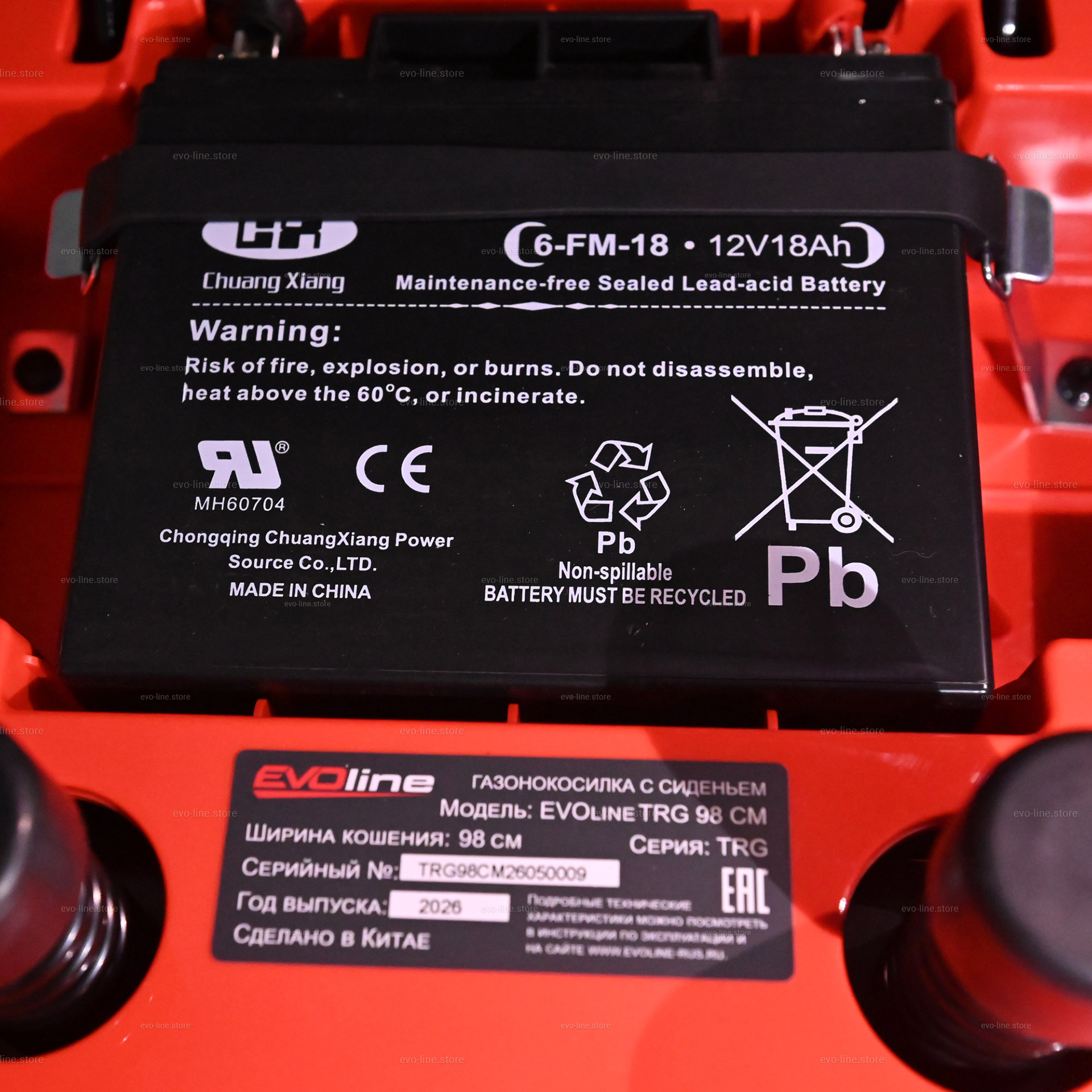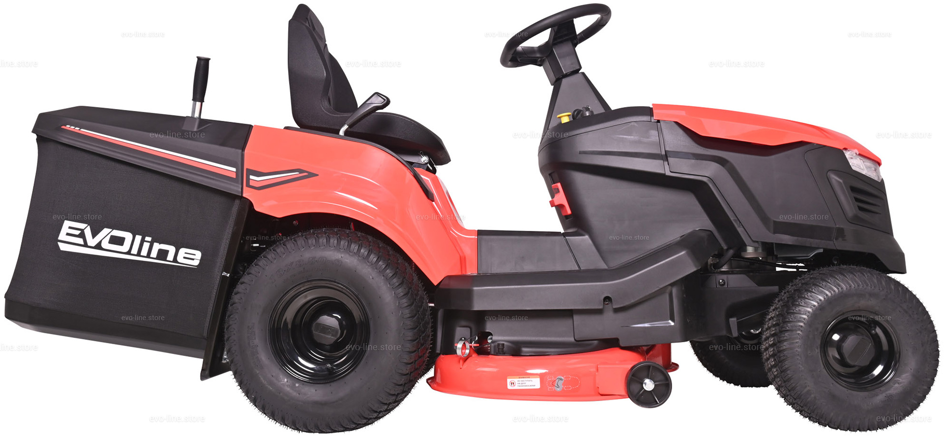 - Садовый трактор EVOline TRG 98 CM оснащен системой обратного управления (СОУ) — позволяет косить при движении задним ходом. В целях безопасности необходимо убедиться, что на участке нет детей и животных.
