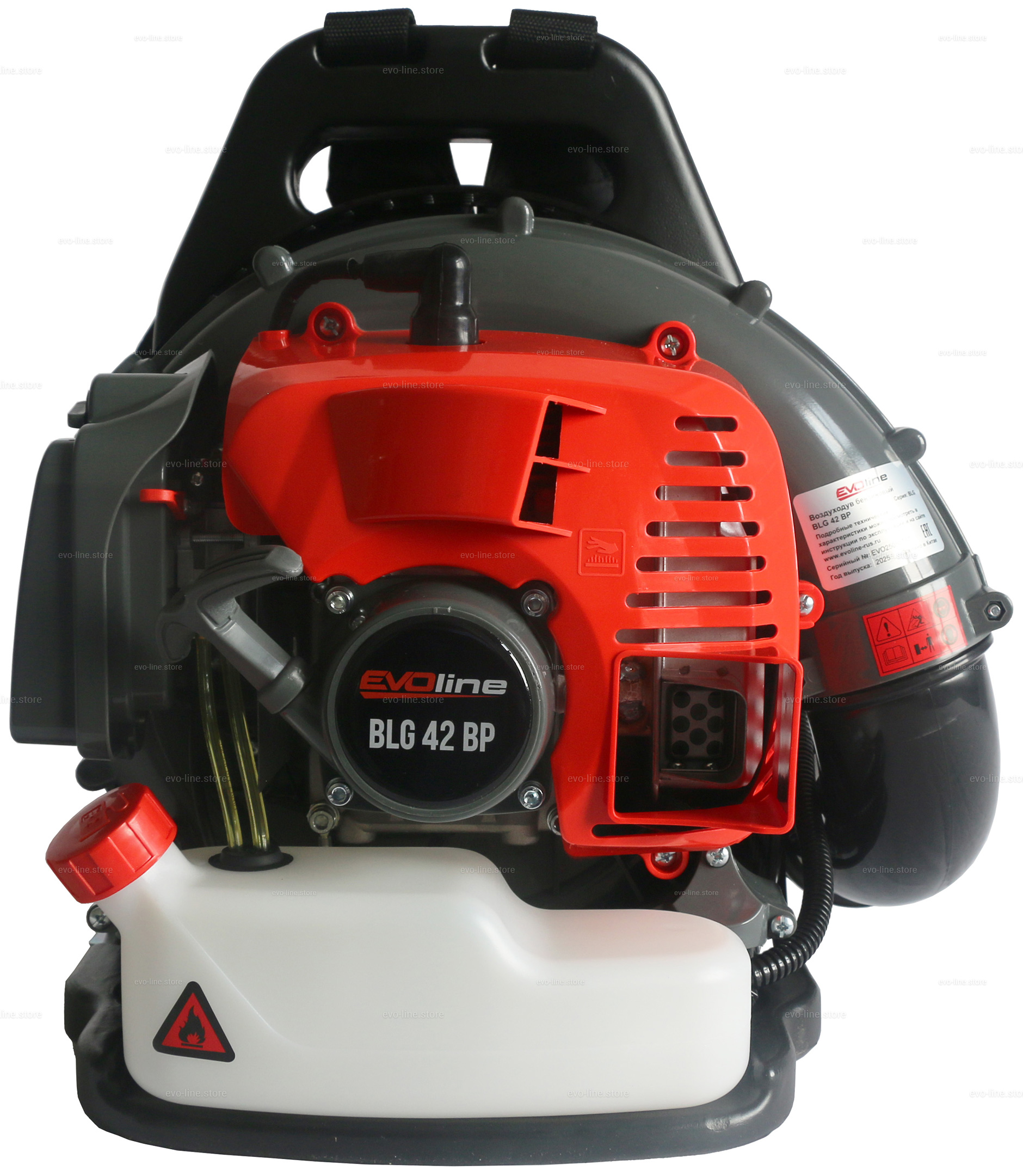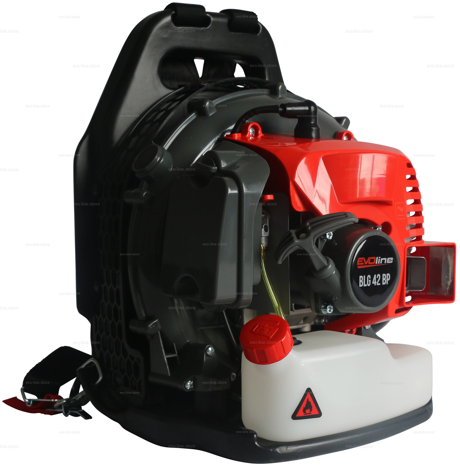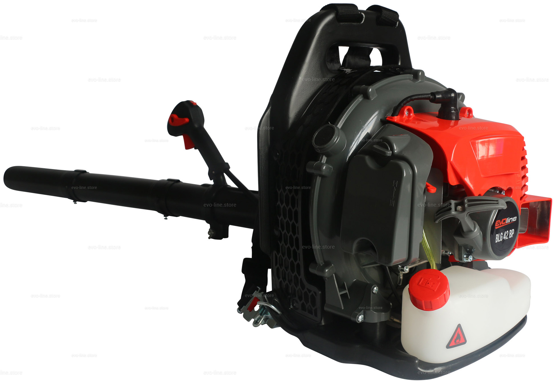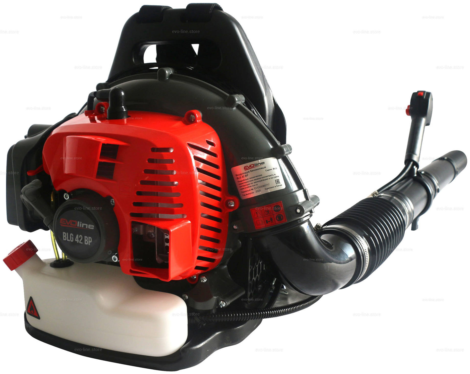 - Профессиональная ранцевая воздуходувка EVOline BLG 42 BP оборудована ранцевой ременной оснасткой, которая оптимальным образом распределяет нагрузку между плечами, грудной клеткой и спиной. Широкие плечевые ремни снижают нагрузку на тело пользователя.